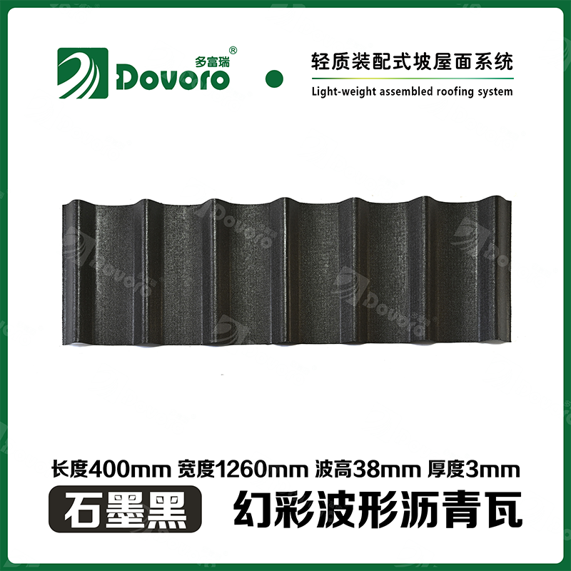 幻彩波形瀝青瓦主要用于高檔別墅和住宅,尤其是對美觀要求較高的坡屋面工程。為立體拱形的節(jié)能環(huán)保輕型屋面防水瓦材。應(yīng)用于坡度大于等于10°且小于75°的建筑屋面。