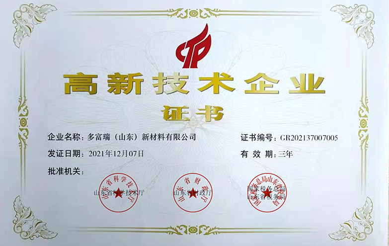 公司加大科技投入和引進(jìn)專業(yè)技術(shù)人才,建立了國內(nèi)第一個專業(yè)實驗室、技術(shù)研發(fā)中心,并積極引進(jìn)先進(jìn)設(shè)備、改進(jìn)工藝、開發(fā)系列新產(chǎn)品,2021年11月正式認(rèn)定成為高新技術(shù)企業(yè)。
