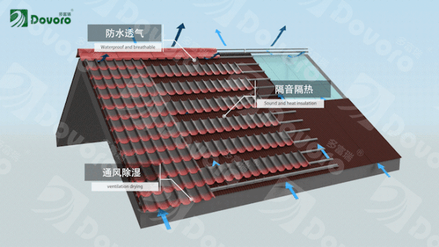 物理連接更帶來(lái)更安全的屋面環(huán)境。傳統(tǒng)屋面中,使用水泥砂漿作為黏合劑。長(zhǎng)期風(fēng)吹日曬會(huì)導(dǎo)致水泥老化脫落,造成瓦片松動(dòng)掉落的危險(xiǎn)。輕質(zhì)坡屋面系統(tǒng)采用純物理連接,杜絕因水泥老化導(dǎo)致的瓦片松動(dòng)脫落。