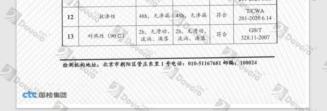 根據(jù)國家建筑材料檢測中心的檢測報(bào)告,波形瀝青瓦的耐熱性在90攝氏度的高溫下,性能依舊穩(wěn)定。在多富瑞2.0系列的產(chǎn)品新增自粘聚合物改性瀝青密封帶,可保證產(chǎn)品100攝氏度下的耐候穩(wěn)定性。