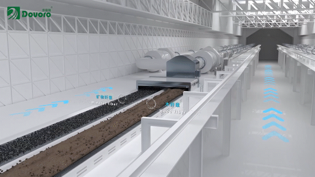 我們在里面加入礦物纖維,然后將木纖維與礦物纖維的混合物一起送入纖維攪拌罐。