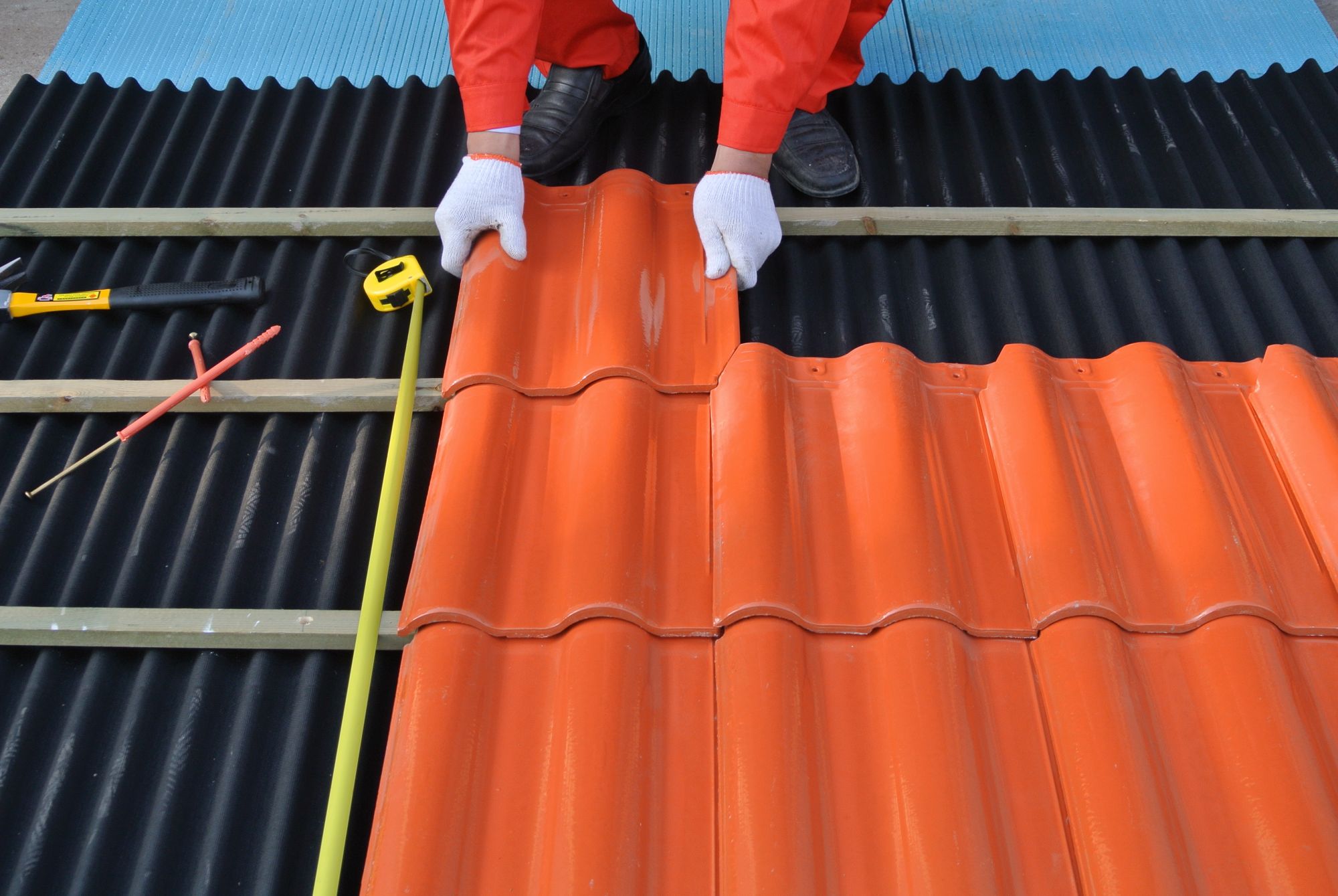 在混凝土屋面上鋪放保溫板(視設計和所在區(qū)域而定)